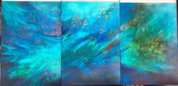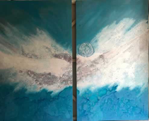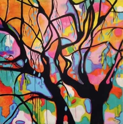 All paintings are available and for sale. They are original works on canvas using acrylic paint and ink or mixed media. If the original work has already sold (NFS), Giclee prints in a variety of sizes are available.